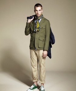 On Sunday, Mark McNairy presented his Spring/Summer 2012 collection for Woolrich Woolen Mills, his second for the label. The offerings were inspired by the 1960′s television show “The Rat Patrol” and Ernest Hemingway’s African safaris as the collection evokes the deserts and plains of Africa with khaki suiting, light weight fabrics and African print shirts, ties and scarves. Also added to the mix are new shoes and shirting silhouettes as well as the utilization of technical fabircs nylons and polyester.